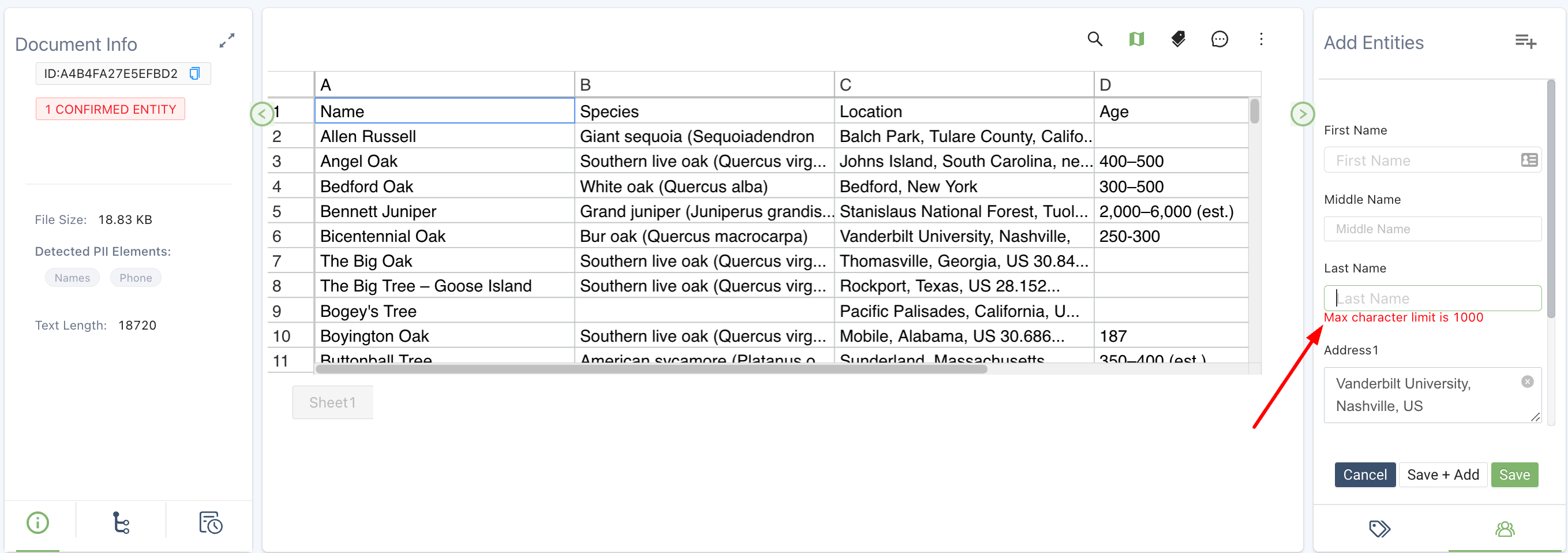 Your team will now get an error message if they try to enter more than 1000 characters into an Entity Field. The character length validation occurs anywhere in the application where your team can enter an entity.