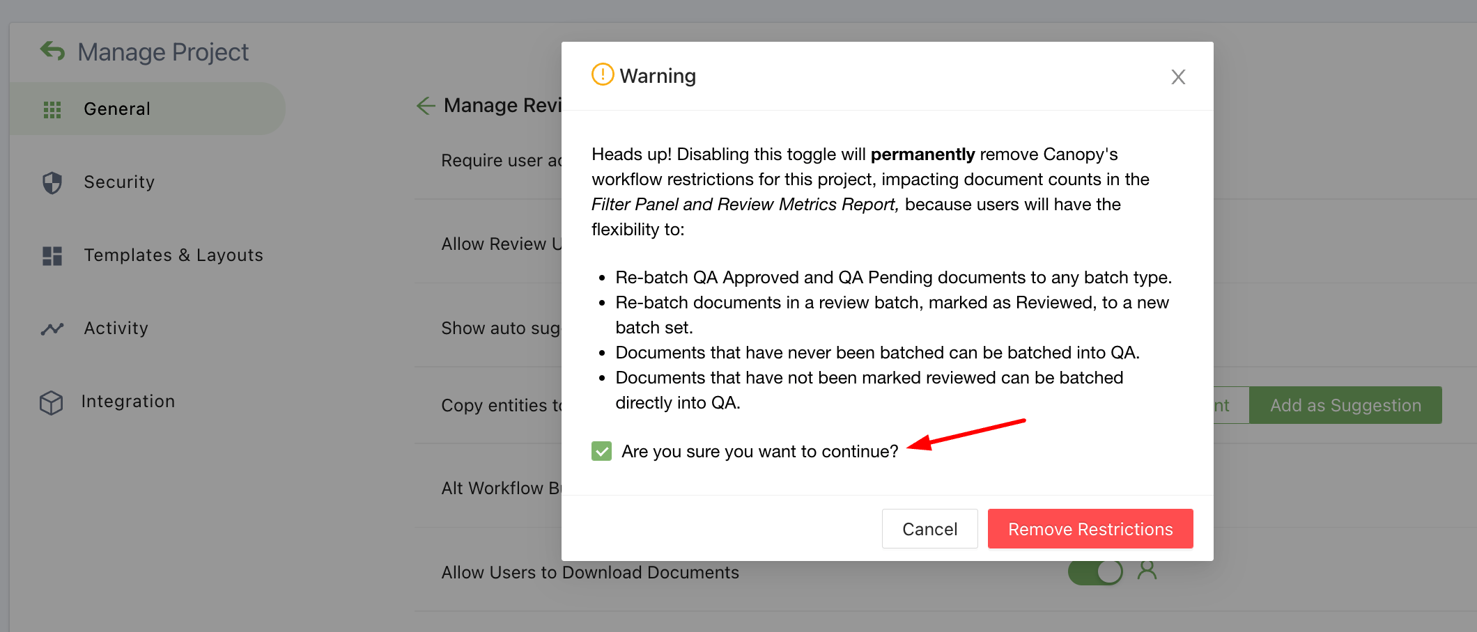 We’ve added a warning, and an additional user confirmation before permanently turning off the batching workflow.