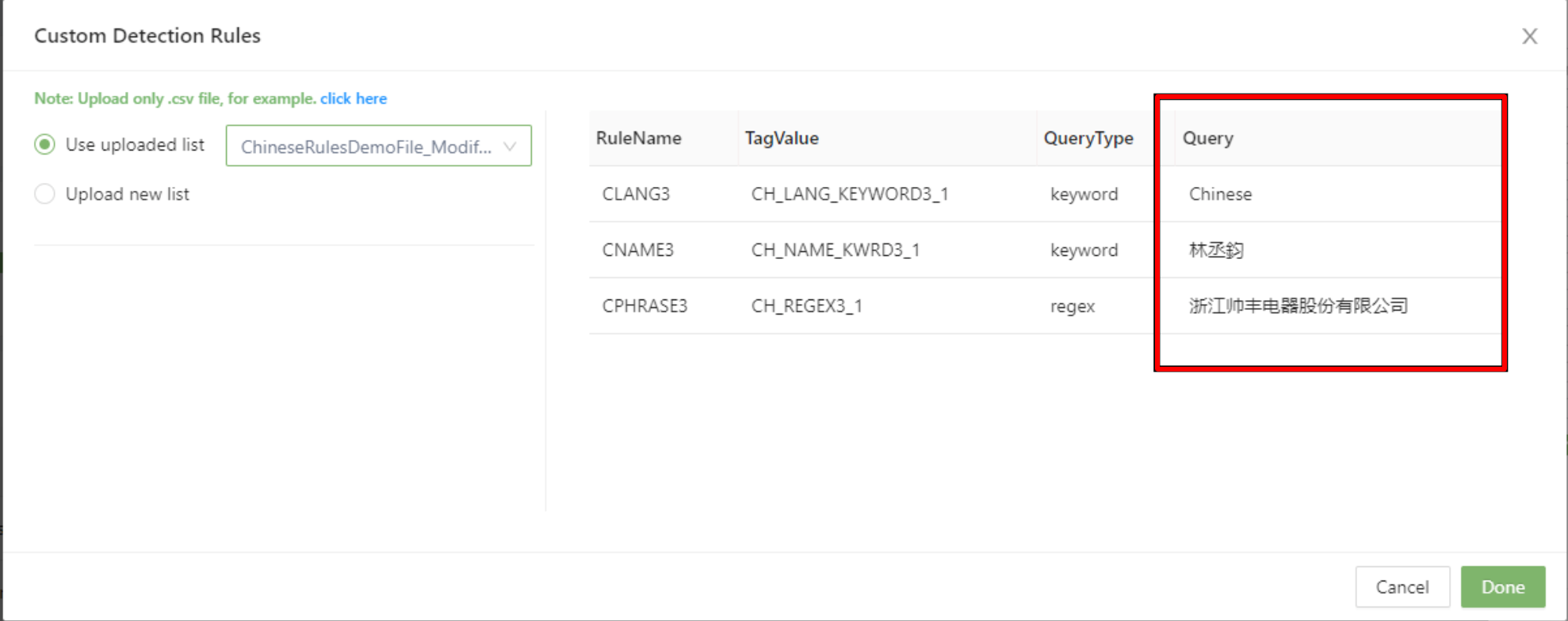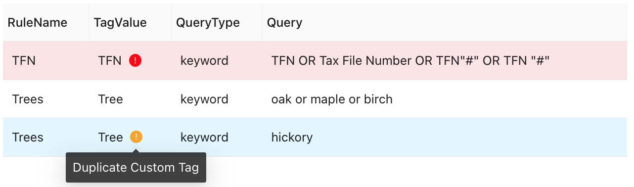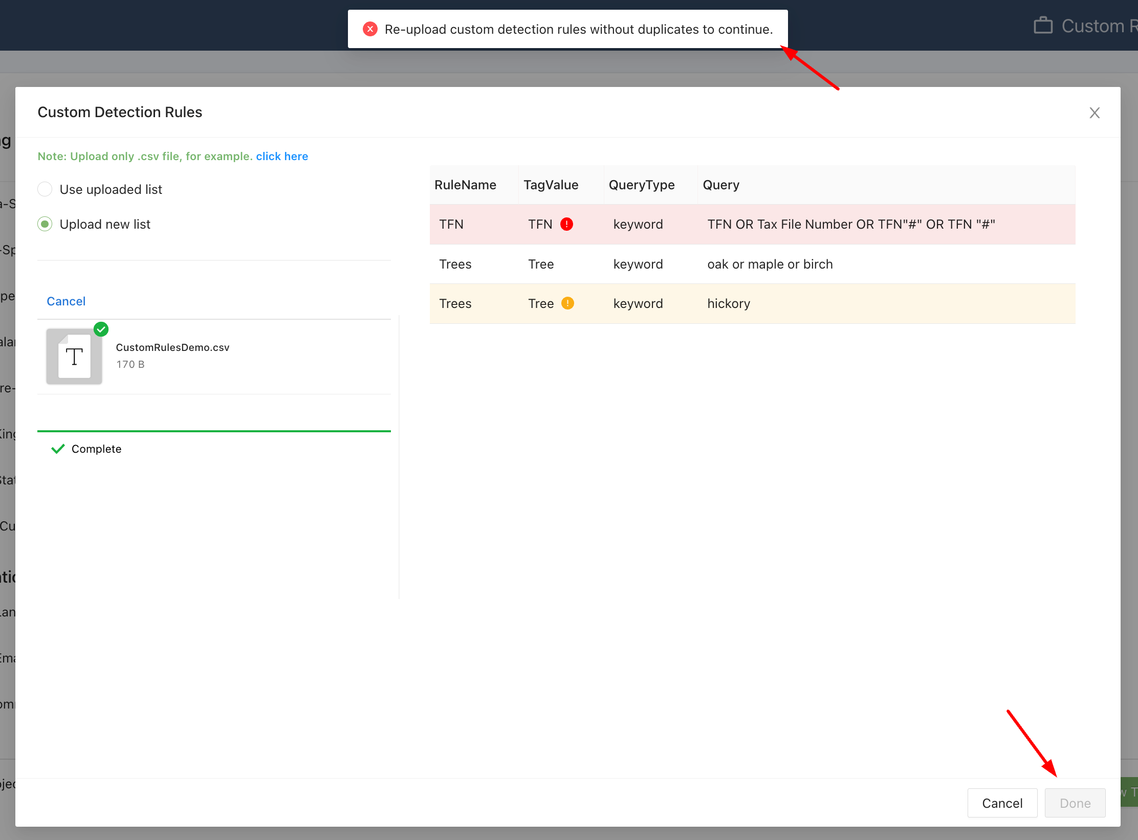 When your team uploads a list of custom detection rules the application will validate the tag names against the list of system tags.