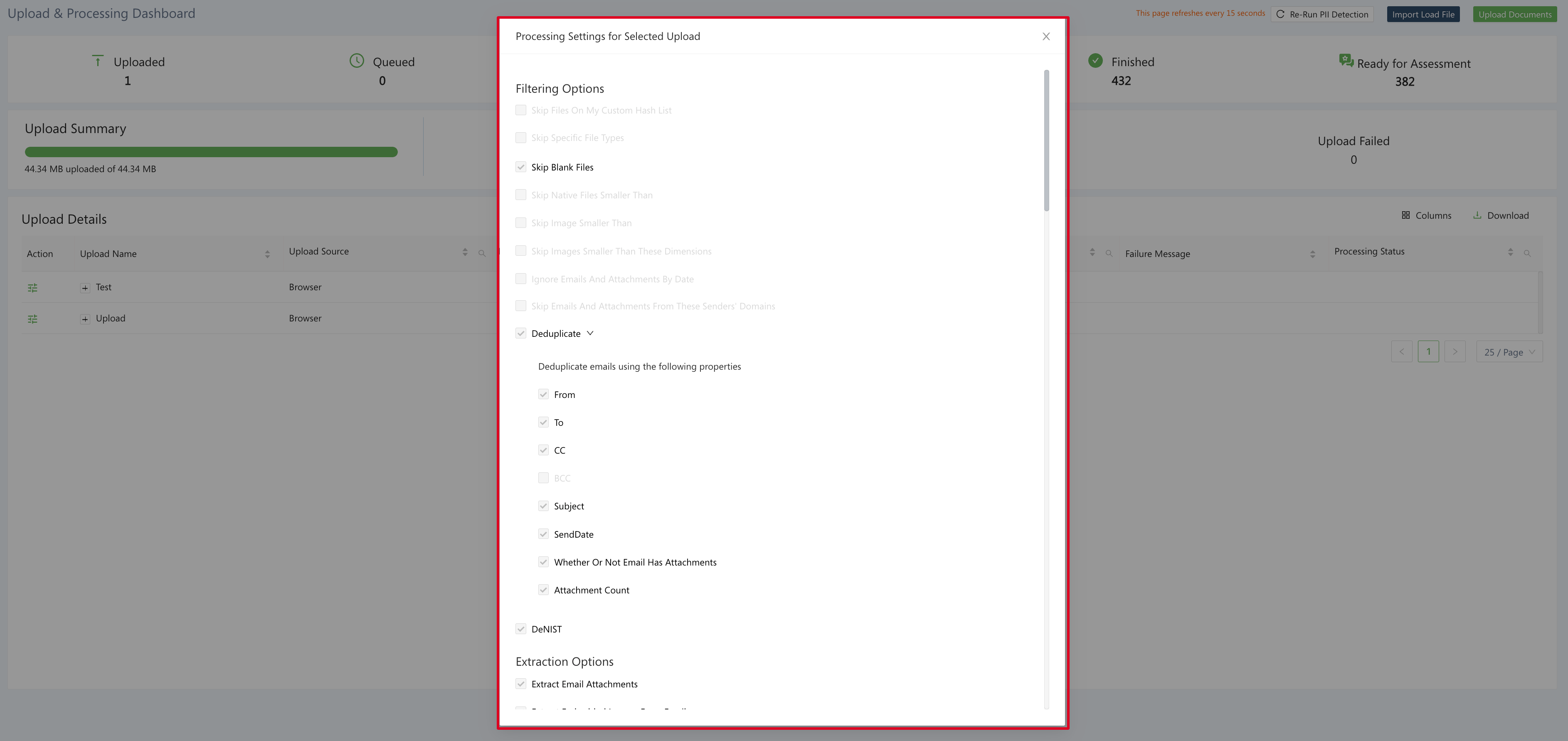 Email Deduplication Settings