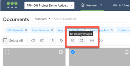 In Gallery View, when the Images filter from image types is applied and one or more images are selected, the Re-classify Images button will appear: