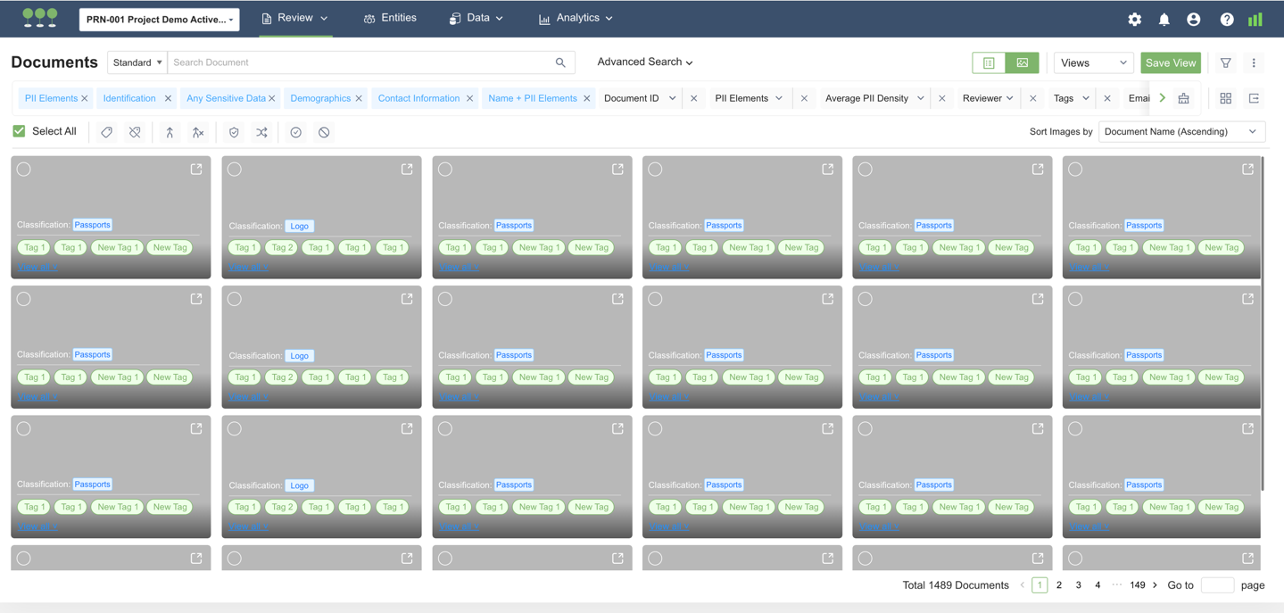 Gallery View also contains fast filter tabs for document type, file extension type, image classification and a toggle to cluster near-duplicate images: